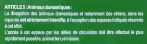 Le square « enfants » est strictement interdit aux chiens !!! (voir le règlement joint ci-dessous et l’ancien panneau qui a été volé)