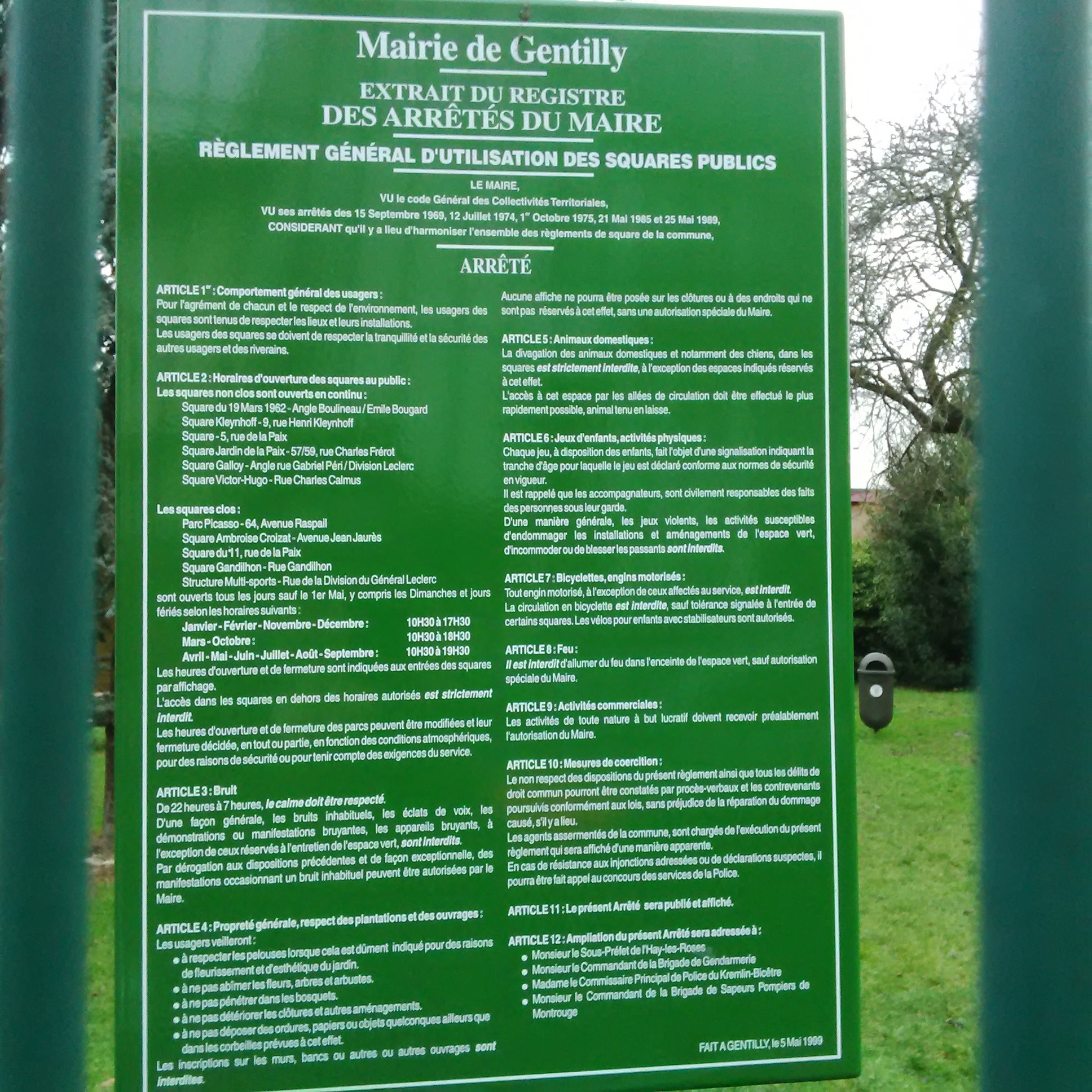 Les squares et jardins ne sont pas autorisés aux chiens à Gentilly.